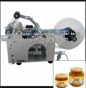 ماكينة نصف أوتوماتيكية لوضع الملصقات علي برطمانات العسل الأبيض والأسود موديل 831 إم تو باك ماركة المهندس منسي