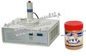 ماكينة لحام لأغطية البرطمنات التي تستخدم في تعبئة الطحينة والتي تعمل بالحث الكهرومغناطيسي موديل 201 إم تو باك